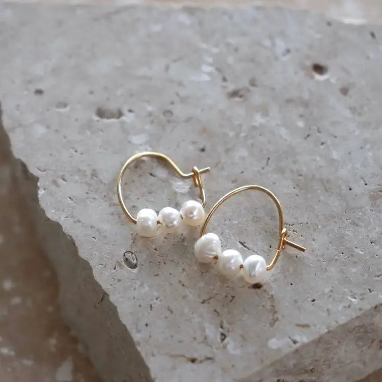 - Natural freshwater pearls in a freeform style are handmade with quality silver or gold stainless steel hoops.