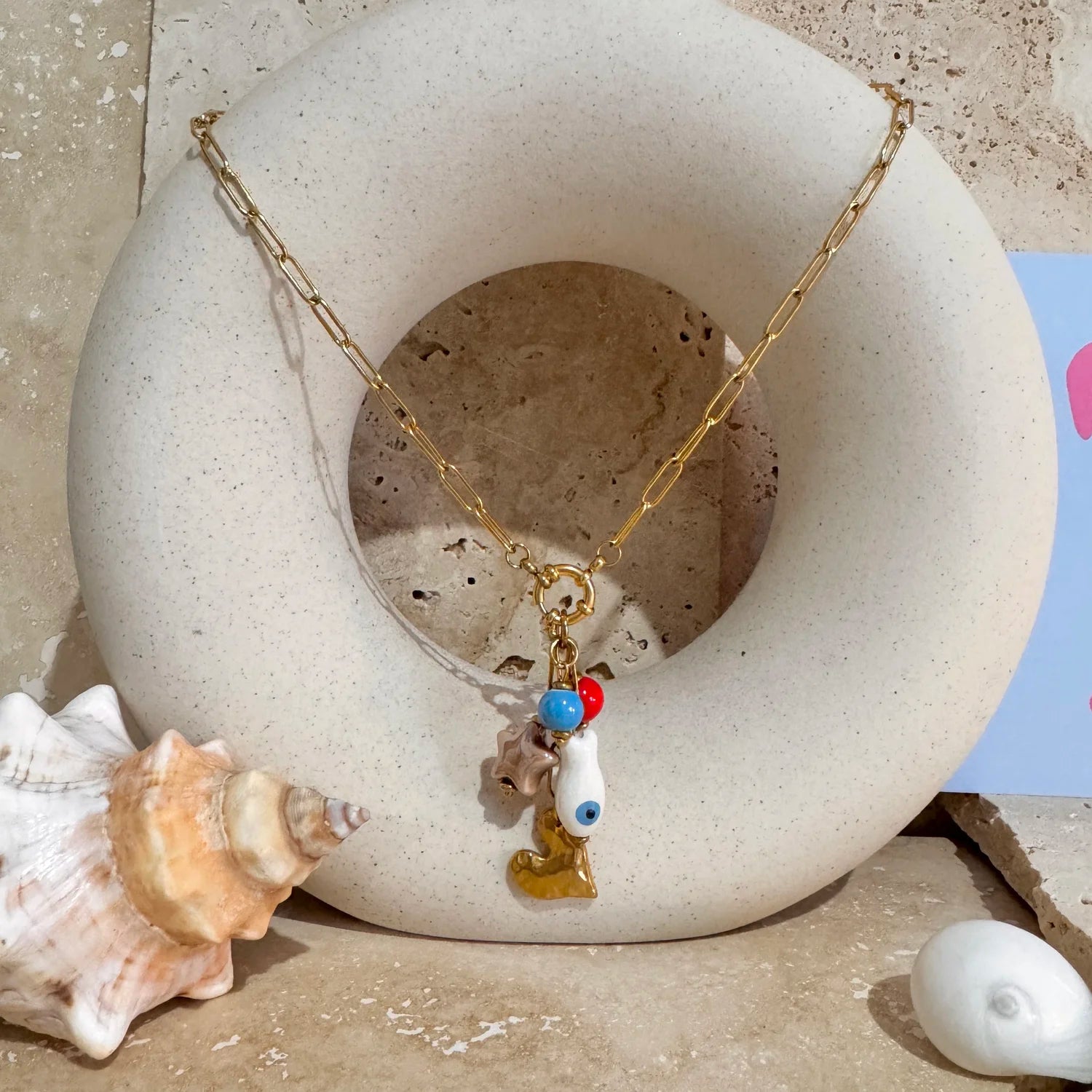 Turn up the summer fun with our Unserious Jewellery Range, designed to match perfectly with the Unserious tees. Bursting with personality, this vibrant chain features a playful mix of hearts, funky fish and star charms, chunky Greek-blue and bright red accents that feel like sunshine, salt water and good energy. Light, fun, and made for mixing, matching and misbehaving — this Range is your reminder not to take life (or your outfit) too seriously.