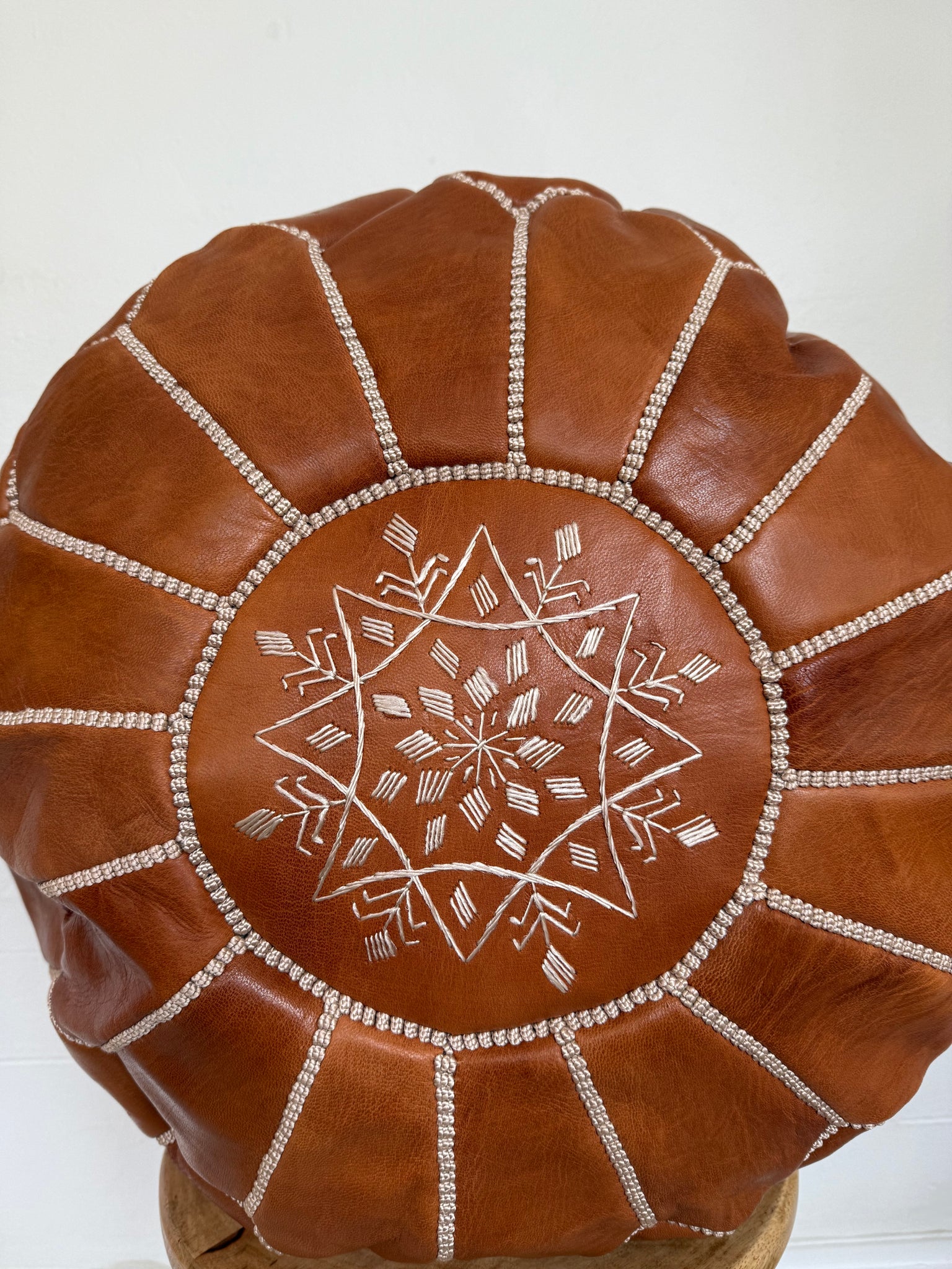 Our ever popular Tan Leather Pouffe is handmade in Morocco by highly skilled artisans using age old traditions and techniques.