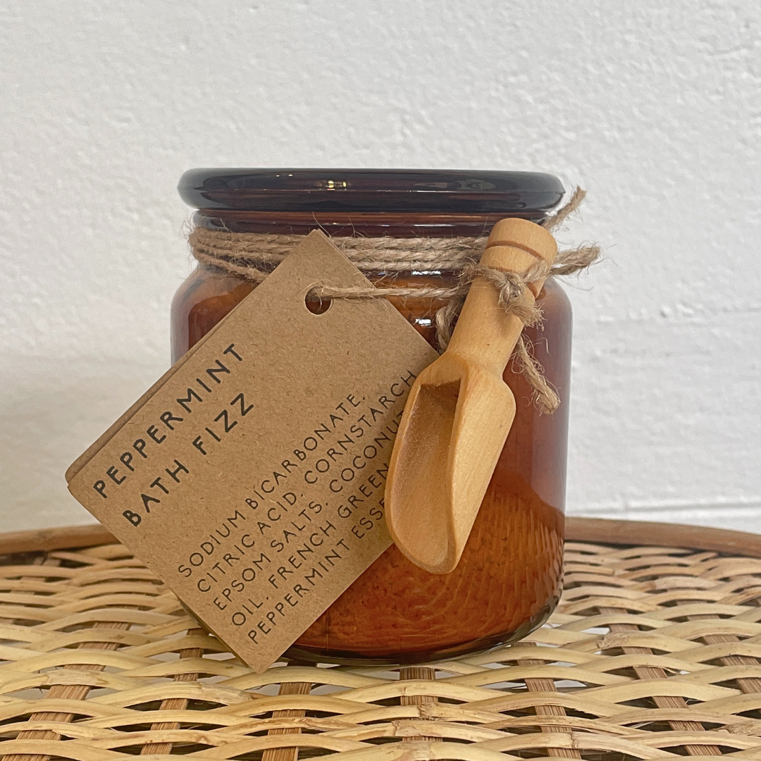 Relax and unwind for some self care with locally made Wild Amber Bath Fizz. The perfect gift idea for someone to relax. With a timber scoop to make it easy to scoop the mixture into the bath.