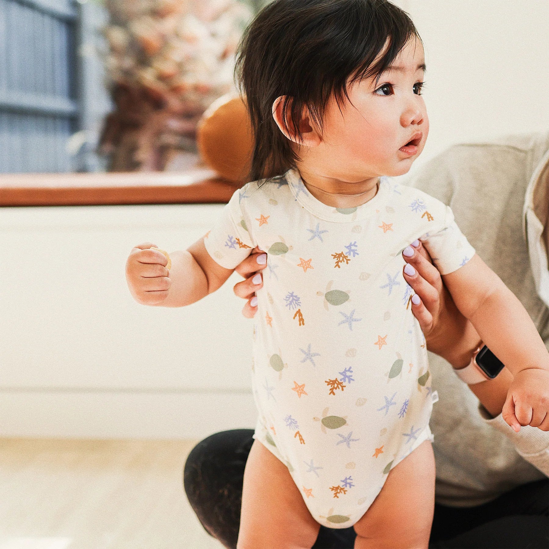 Learn and grow, littlest love. Our versatile comfy bodysuit is perfect for layering, featuring snap openings at the neck and crotch for easy changes. Made with our signature sustainable viscose, ensuring it is kind on delicate newborn skin.