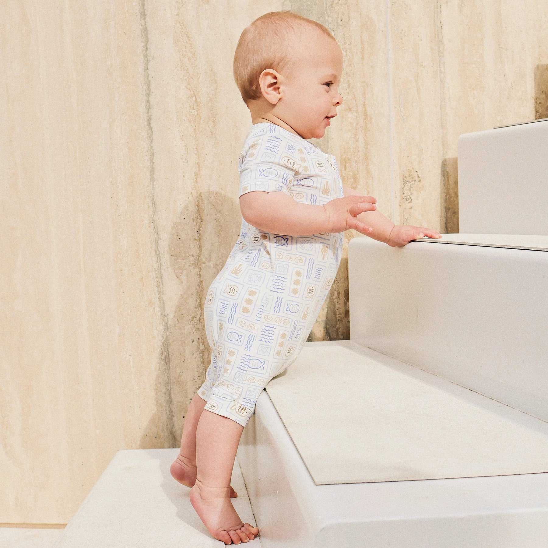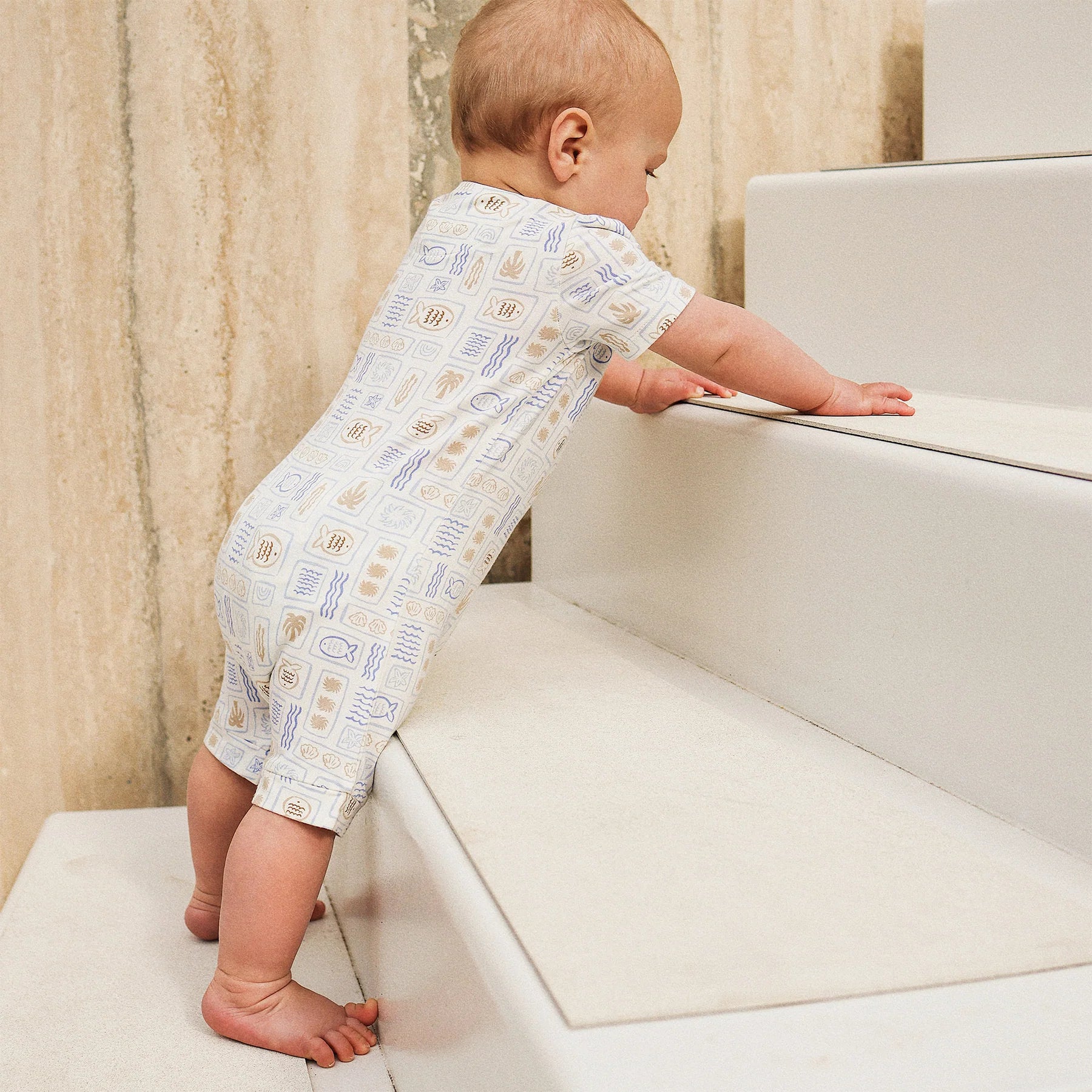 Crafted for day or night wear, our versatile onesie has been redesigned with summer practicality in mind. Made using our sustainable viscose fabric, its touch is 'just right' for delicate newborn skin.