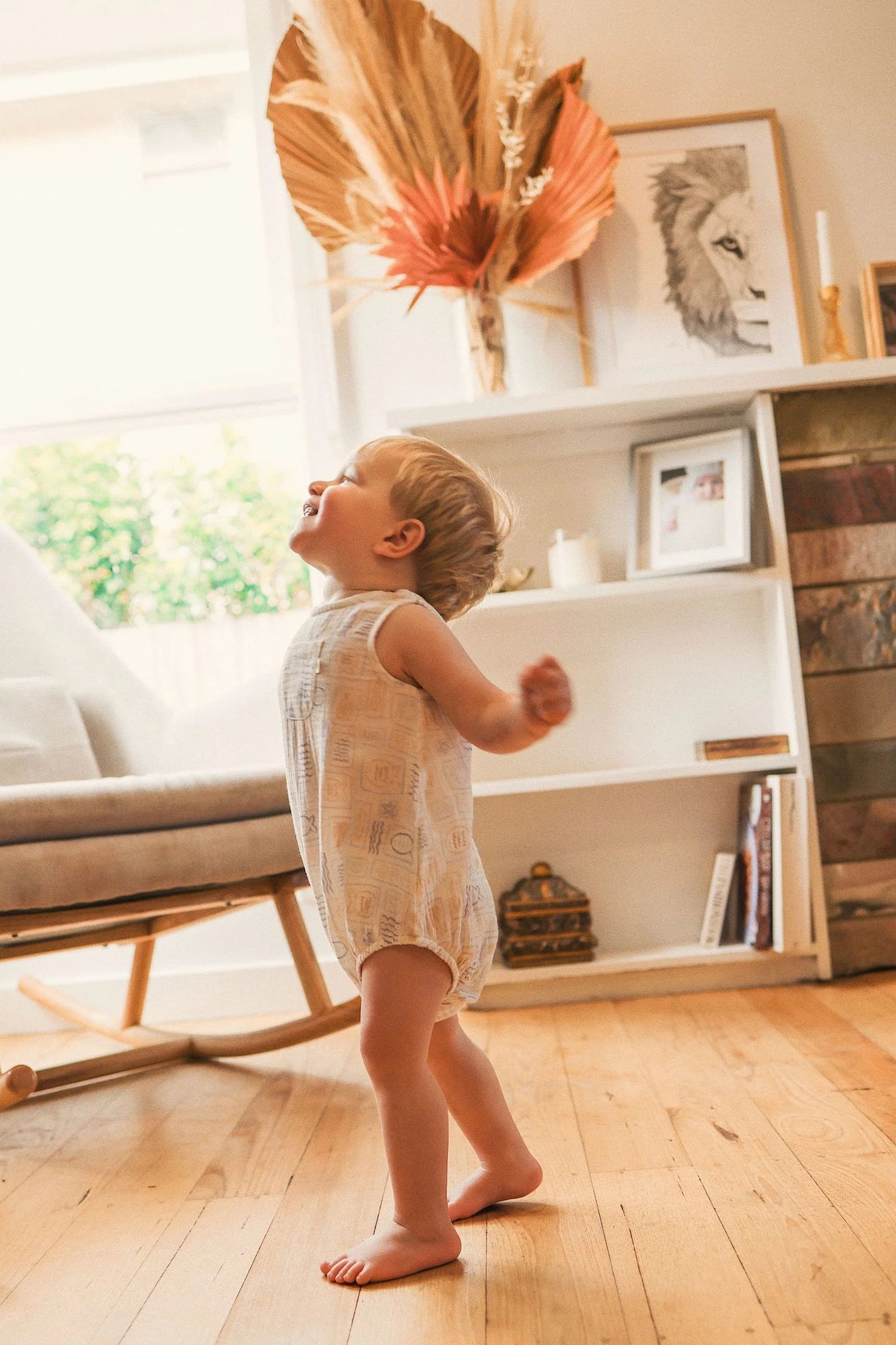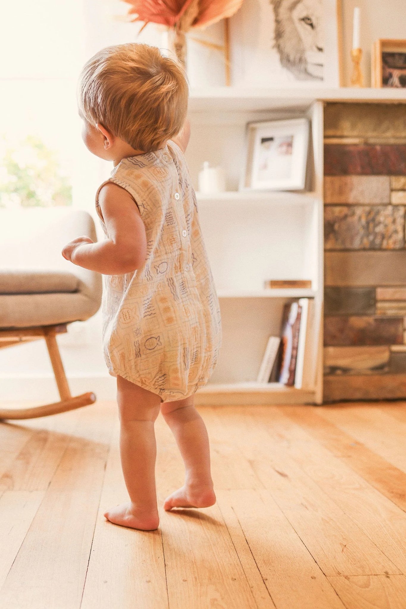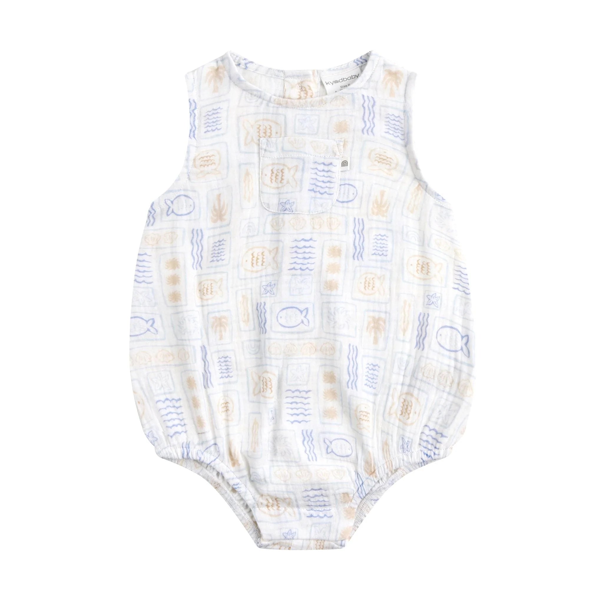 This airy organic cotton romper is lightweight and sleeveless, with a handy button henley style front to make dressing a breeze. Plus, it has an in-leg opening for effortless nappy changes. Perfect for playtime or family outings.